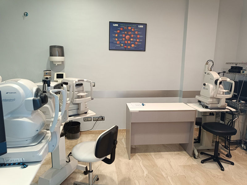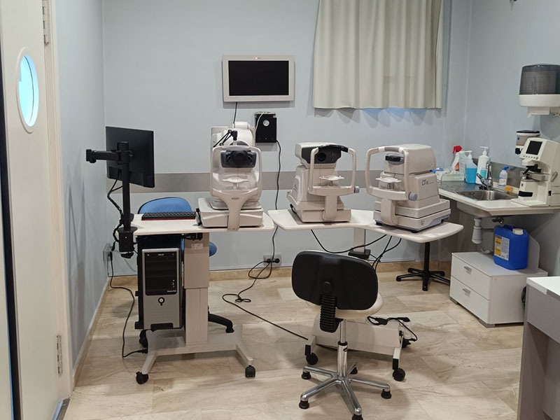 Cirurgia ocular, làser ocular, prevenció del glaucoma, estudi i seguiment de cataractes, proves diagnòstiques, entre elles campimetria, ecografia, retinografia i fons d’ull, control de tensió ocular, paquimetria, topografia Pentacam, angiografia, tomografia de coherència òptica, biometria, microscòpia.